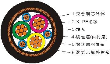 6 | BP-YJP2VP | 交聯(lián)聚乙烯J緣銅帶繞包分屏蔽銅絲編織總屏蔽聚氯乙烯護(hù)套變頻器用主回路電纜 |