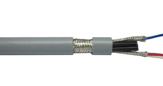 標準的2線對RS-485通訊電纜,特性阻抗120歐姆,導體為2線對4(2x2x24AWG)多股絞合鍍錫銅絲,PE絕緣護套;為適用于復雜的工業噪聲環境,特采用鋁箔/聚酯復合帶100%屏蔽率+鍍錫銅編制網90%屏蔽率共雙重屏蔽,并附有獨立TC接地導體,工業灰色PVC外護套,符合UL AWM 2919文件規范。