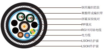 1x75Ohm RG11 同軸電纜(位于電纜中間)
